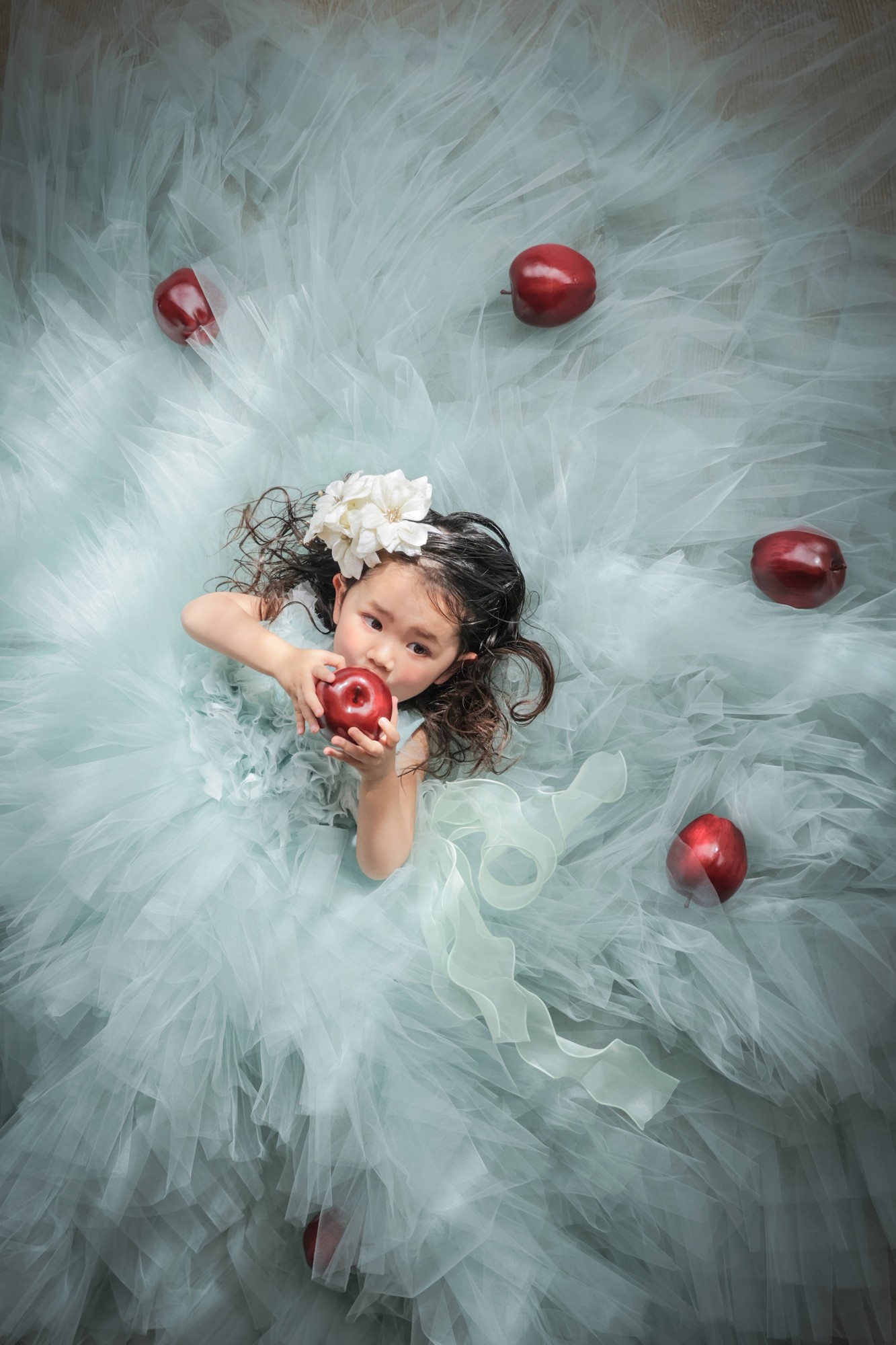 和装では希少な正絹の着物をご用意しているほか、チュールなどの小物を用い、お子さまひとりひとりにぴったりのコーディネートをご提案します。また洋装では、店舗オープンに向けてオーダーメイドしたラグジュアリードレスが入荷。細部までこだわり抜いた衣装で、特別な1枚を残せます。