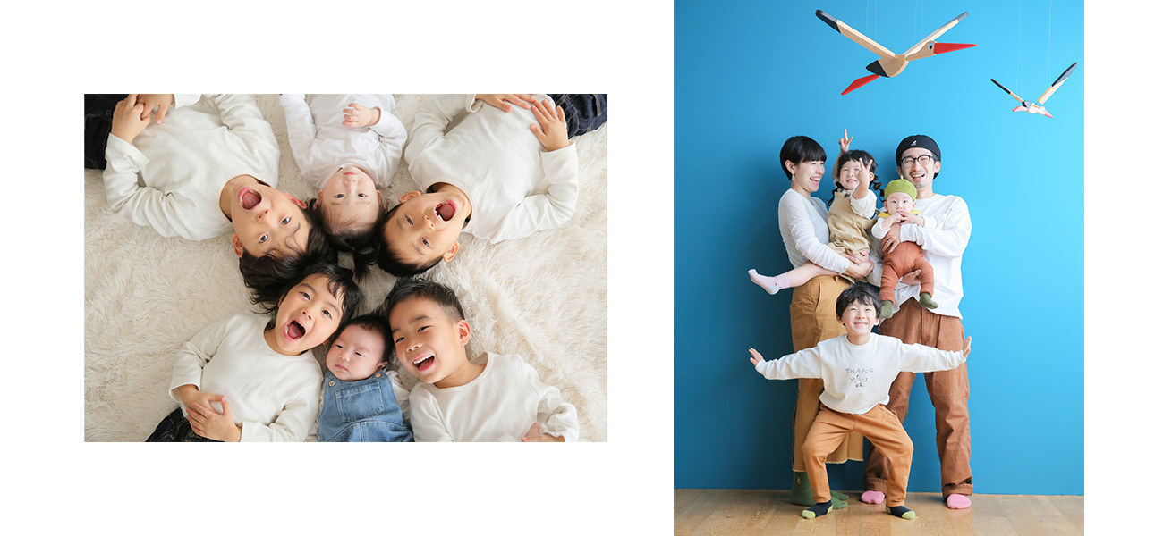 マタニティ・お宮参り・ハーフバースデー・誕生日・七五三・入学・卒業・還暦といったライフイベントの記念はもちろん、特別な日ではなくても、毎年の成長の記録にご来店いただけるフォトスタジオ。撮った写真も、ハピスタで過ごす時間もずっと家族の思い出になるようにと考えながら撮影を行っています。