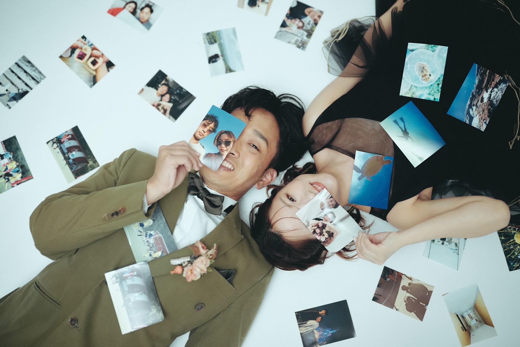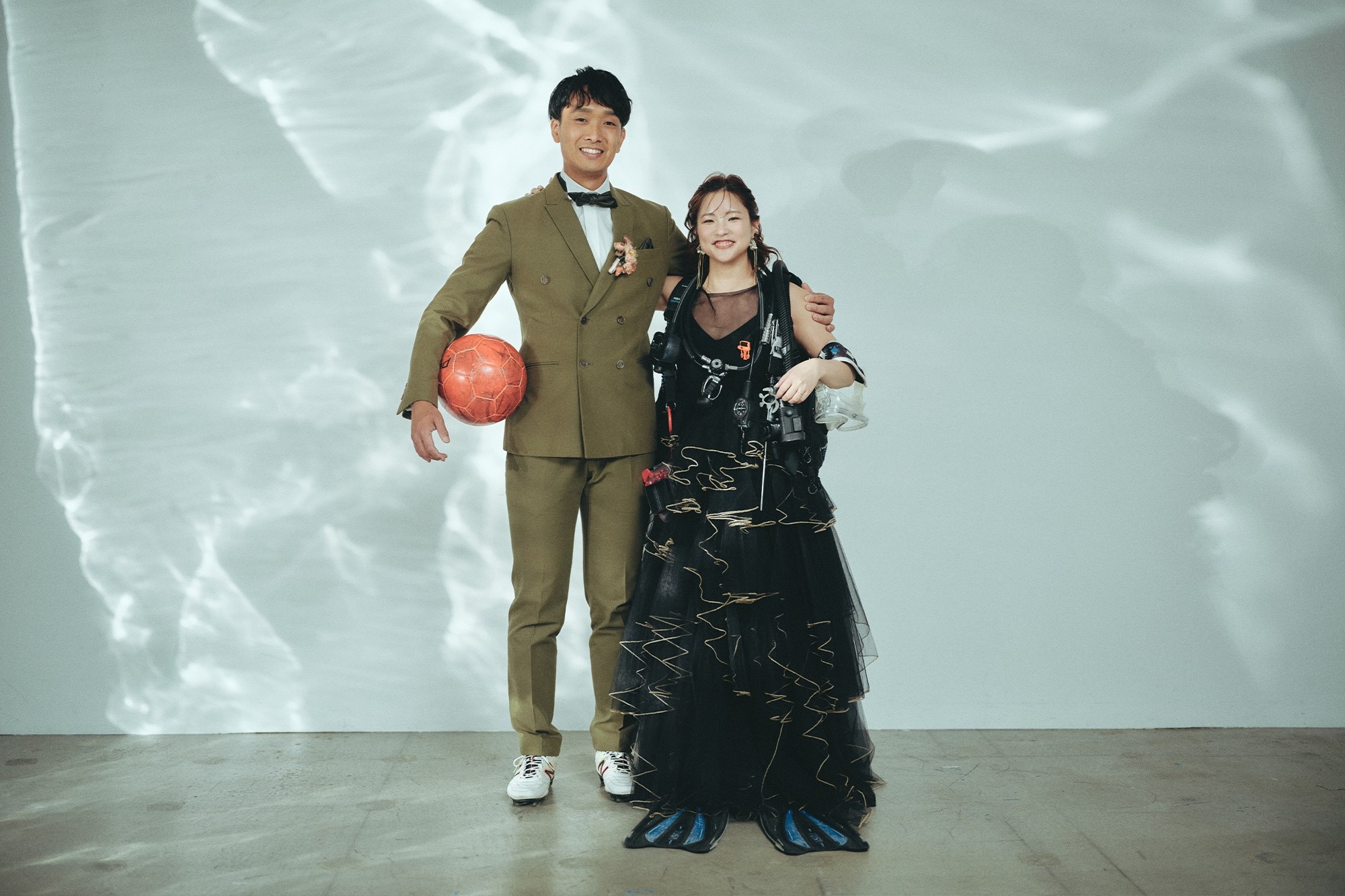 それぞれダイビングとサッカーが趣味のおふたりは、ダイビンググッズやサッカーボール、思い出の写真などを撮影アイテムとして使用。おふたりの思いがぎゅっと詰まった写真がたくさん誕生しました。