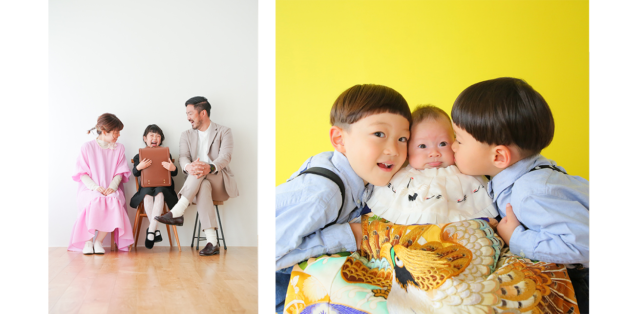 マタニティ・お宮参り・ハーフバースデー・誕生日・七五三・入学・卒業・還暦といったライフイベントの記念はもちろん、特別な日ではなくても、毎年の成長の記録にご来店いただけます。